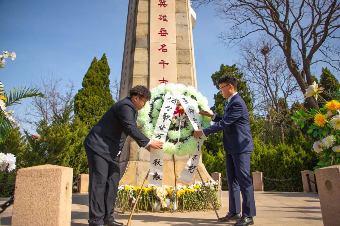 青山埋忠骨,清明祭英靈。在煙臺(tái)山抗日烈士紀(jì)念碑前,煙臺(tái)職業(yè)學(xué)院100余名團(tuán)干部、團(tuán)員青年參加了莊嚴(yán)的祭奠革命先烈儀式。通過(guò)唱國(guó)歌、敬獻(xiàn)花圈、團(tuán)旗下演講、重溫入團(tuán)誓詞等環(huán)節(jié),激勵(lì)團(tuán)員青年繼承先烈遺志,發(fā)揚(yáng)革命傳統(tǒng),踐行新思想,勇作時(shí)代弄潮兒。煙臺(tái)職業(yè)學(xué)院團(tuán)委書(shū)記張俊同志寄語(yǔ)團(tuán)員青年,向革命先烈學(xué)習(xí),堅(jiān)定理想信念,時(shí)刻做到聽(tīng)黨話跟黨走,創(chuàng)造新時(shí)代青年的不凡業(yè)績(jī),以優(yōu)異的成績(jī)迎接建黨100周年。祭奠英烈儀式在全體人員高唱團(tuán)歌中落下帷幕。